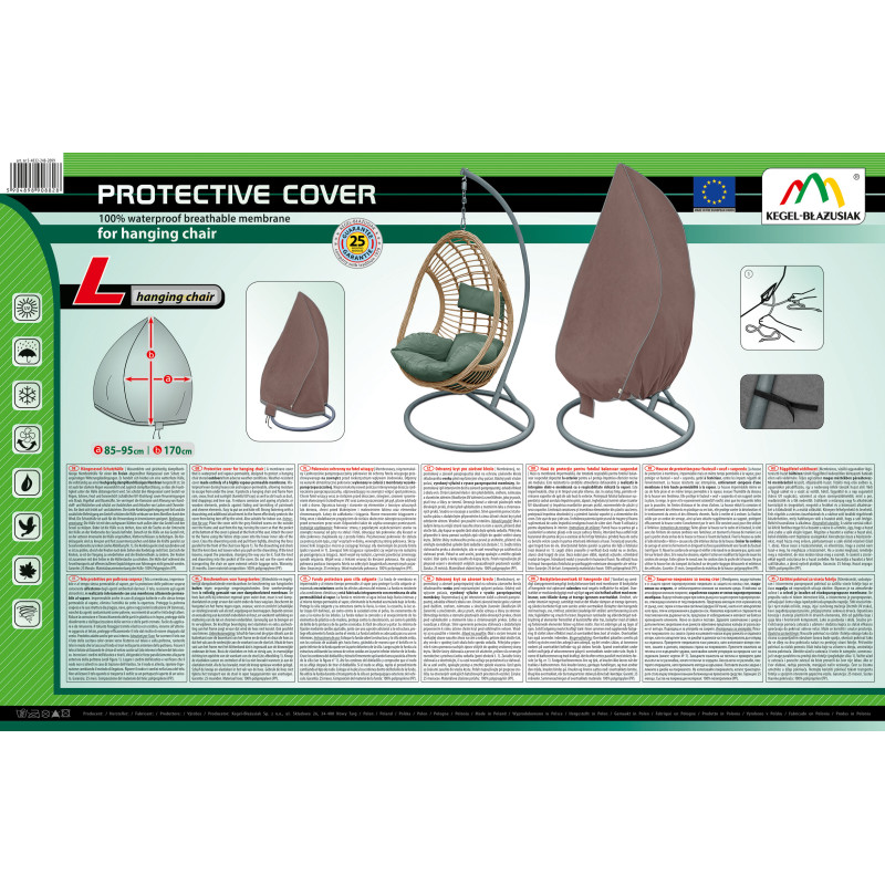 Ochranný kryt na závěsné křeslo spolehlivě chrání před deštěm, UV zářením a prachem. Vyroben z 210 DEN Oxford polyesteru, voděodolný, s UV vrstvou 50+ – ideální pro celoroční použití.