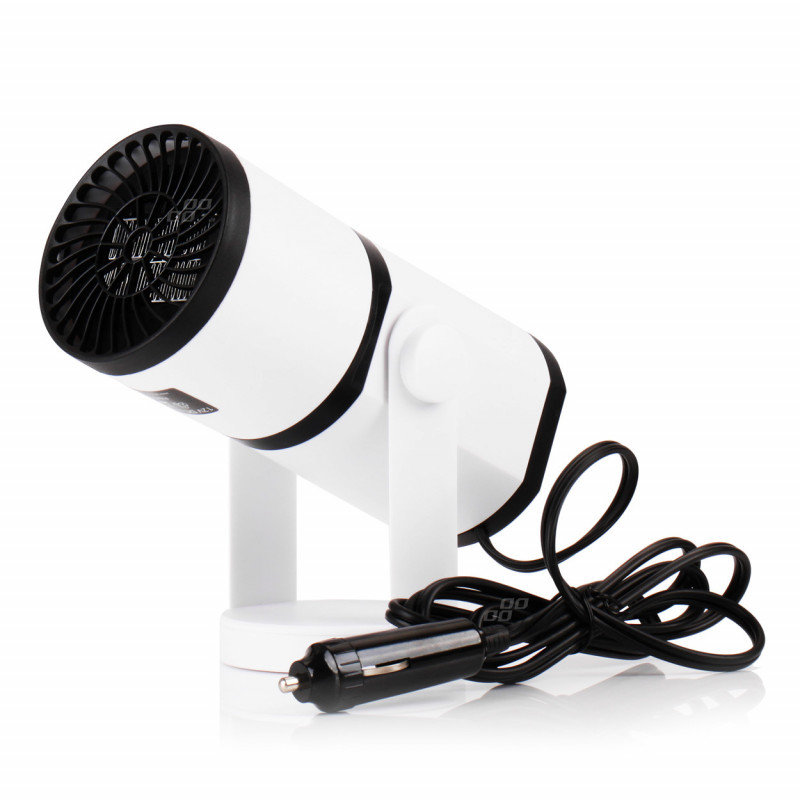 Výrobek má funkce horkého a studeného vzduchu. Vhodné pro napájení ze zásuvky zapalovače cigaret 12 V. Funkce se volí spínačem umístěným na krytu. Nastavitelný držák s lepicí páskou.