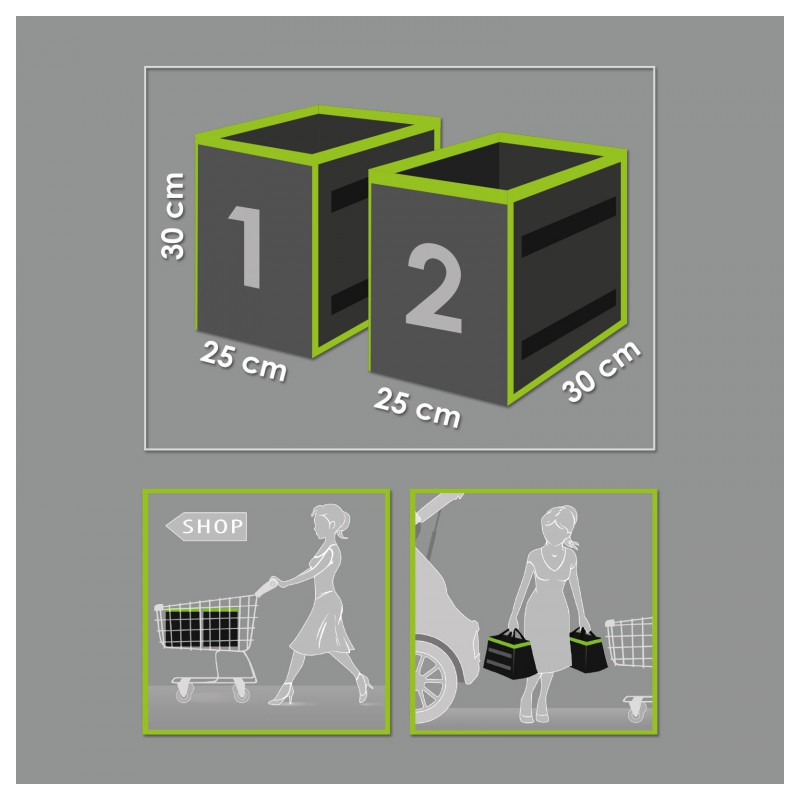 Máte také spoustu nepříjemností s volně se pohybujícími předměty v kufru při brzdění nebo otáčení? S tímto dvoudílným organizérem do kufru je tomu konec. Můžete uložit vaše vybavení do auta, nebo dokonce nákup, aniž by se pohybl během jízdy. spony na boku, může být také použit jako přenosná taška s rukojetí.Prvky mohou být připevněny k sobě nebo dokonce k boční stěně kufru.