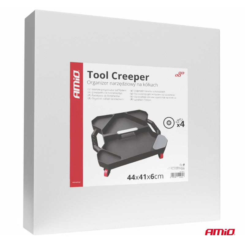 Organizér nářadí na kolečkách AMiO-04265 je praktický a mobilní pomocník pro každého mistra, mechanika nebo domácího kutila. Jeho robustní konstrukce z odolného plastu s vysokými okraji zabraňuje vypadávání nářadí a umožňuje efektivní uspořádání nářadí, jako jsou klíče, šroubováky a další příslušenství. Díky odolným kolečkům je snadno přenosný a ideální pro práci pod vozidlem, v autodílně nebo garáži.