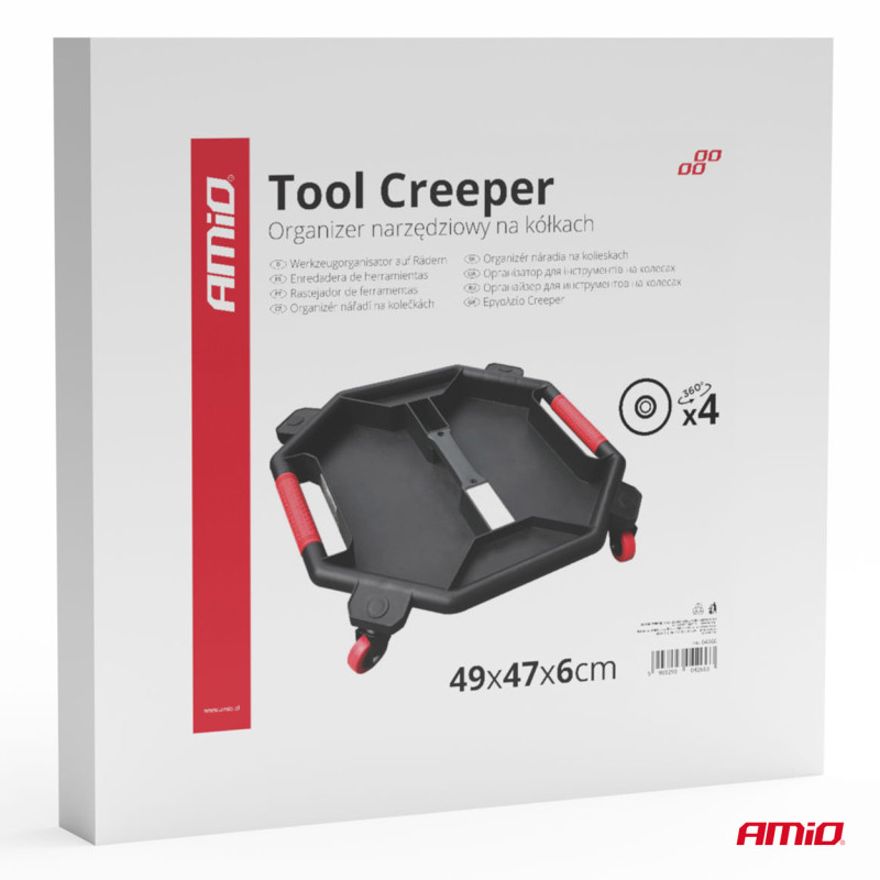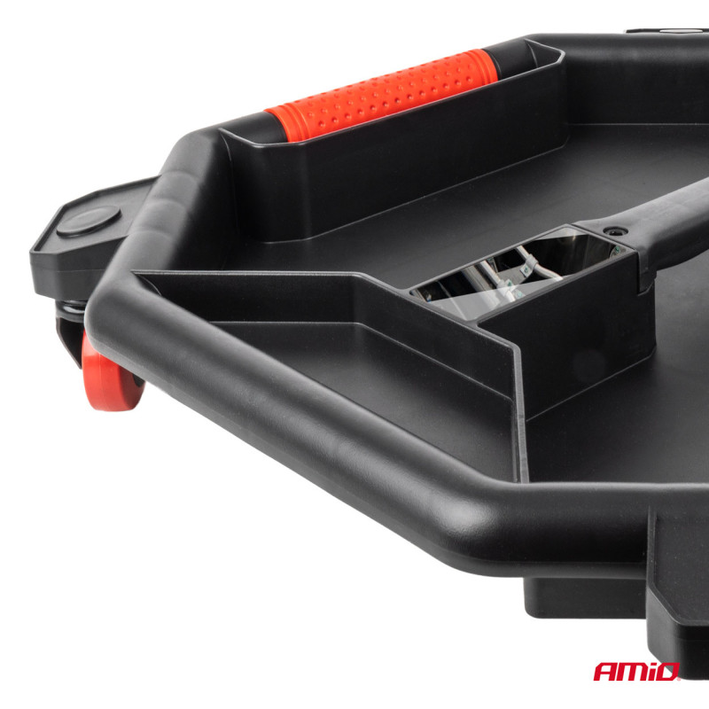 Organizér nářadí na kolečkách AMiO-04266 je praktický a mobilní pomocník pro každého mistra, mechanika nebo domácího kutila. Jeho robustní konstrukce z odolného plastu s vysokými okraji zabraňuje vypadávání nářadí a umožňuje efektivní uspořádání nářadí, jako jsou klíče, šroubováky a další příslušenství. Díky odolným kolečkům je snadno přenosný a ideální pro práci pod vozidlem, v autodílně nebo garáži.