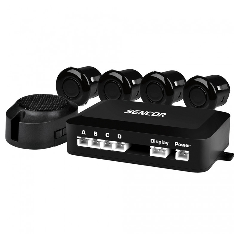 Systém 4 parkovacích senzorů se zvukovou detekcí překážek.