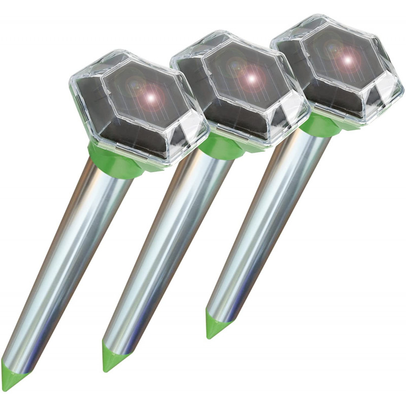 Toto zařízení na odpuzování zvířat je jedním z odpuzovačů nové generace! Generuje vibrace v cca. 60 sekundových intervalech ve frekvenčním rozsahu 400 Hz ± 50 Hz. Vnější test ukázal, že tyto speciálně generované vibrace mají optimální efektivní plochu přibližně. 1 000 m², v závislosti na stavu půdy. Protože tónové frekvence a vibrace jsou pro mnohá půdní zvířata nesnesitelné, migrují do jiných oblastí. Ostatní užitečná zvířata nejsou poškozena. Integrovaný vibrační motor střídavě s emisemi frekvencí vysílá vibrace do země v nepravidelných intervalech, aby podráždil zvířata a utekl. Nepravidelné intervaly snižují návyky zvířat k narušení jejich životního prostředí. V některých případech krtkova zpočátku vzdorně reagují na nasazení zařízení zvýšením své kopací aktivity a vytvořením dalších krtinců. Toto je přirozená reakce. Ale protože emitované oscilace a vibrace jsou pro hlodavce z dlouhodobého hlediska neúnosné, po několika dnech nebo týdnech natrvalo migrují do jiných oblastí. Solární odpuzovač zvířat lze použít na zahradě, na poli nebo na jiných vnějších prostranstvích s nežádoucími hlodavci. Jemně vyladěné elektronické součástky a efektivní solární moduly zaručují stálou funkci i při horším osvětlení. Tento přístroj odpuzuje nejen hlodavce, ale také mravence a hadi!