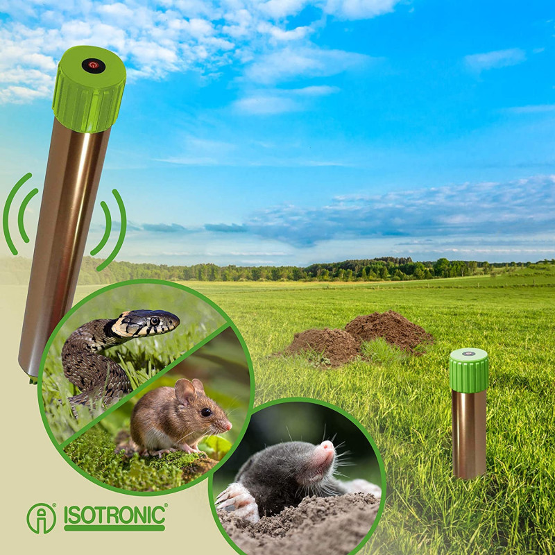 EFEKTIVNÍ: ISOTRONIC Mole Repeller vydává každých 40 sekund zvukové vlny a vibrace, které hlodavcům znějí jako jejich signály přirozeného nebezpečí, a tak způsobují, že se jim vyhýbají kolem 7 000 metrů čtverečních. Nejkvalitnější a nejefektivnější prostředek k ochraně vaší zahradní oblasti.