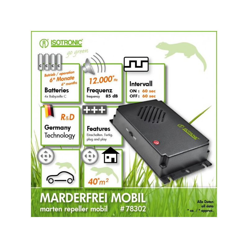 Vysoce účinný přístroj generuje agresivní ultrazvukový signál ve frekvencích 12kHz v 60 sekundových intervalech. Tento signál je kunám a hlodavcům velmi nepříjemný a proto se mu vyhýbají. Vysoké ultrazvukové tóny nejsou pro lidi slyšitelné.