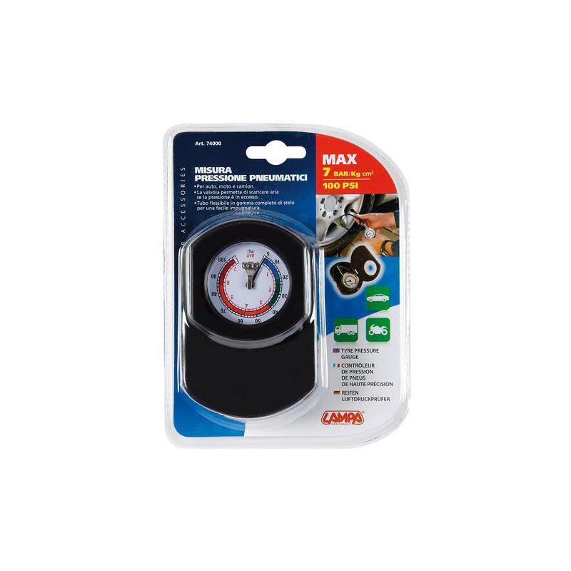 Měřič tlaku v pneumatikách, rozsah až 0,5 - 5 Bar.