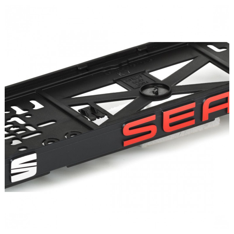 Podložka pod SPZ auta s 3D červeným nápisem SEAT. Vysoká flexibilita podznačky, kde ani při menších nárazech nedochází k prasknutí nebo ztrátě SPZ.