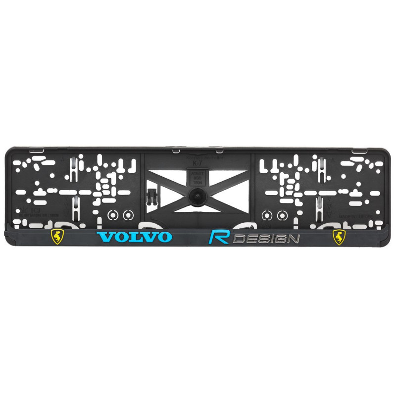 Podložka pod SPZ s 3D chromovým nápisem a barevným logem značky VOLVO R DESIGN