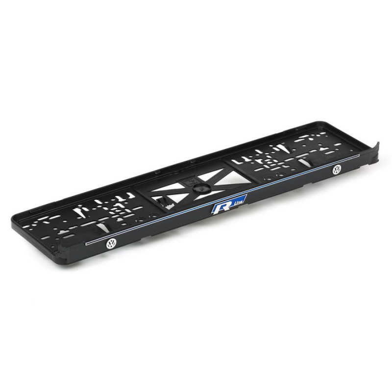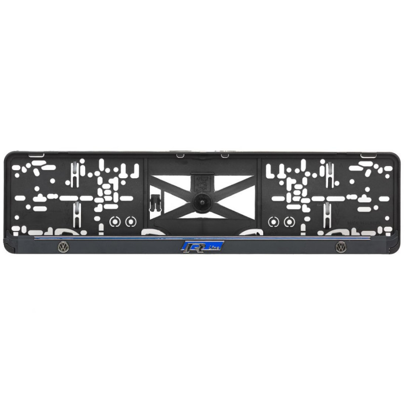 Podložka pod SPZ s 3D modrým nápisem a chromovým logem značky VW R LINE