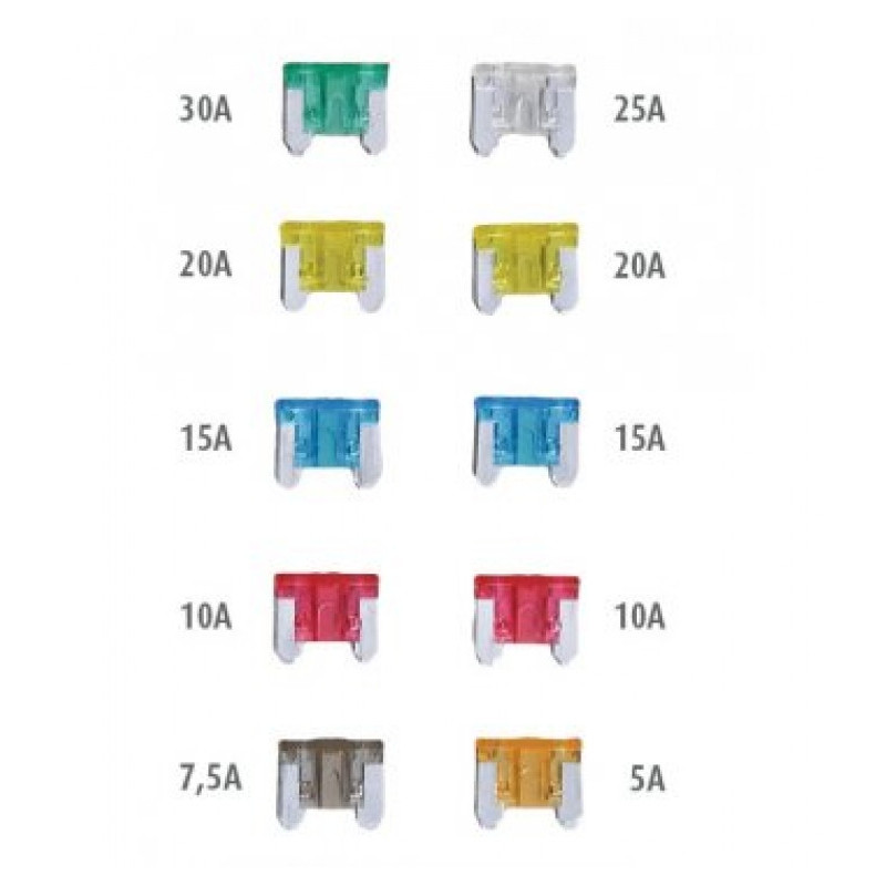 Obsah balení : 5A, 7,5A, 2x 10A, 2x 15A, 2x 20A, 25A, 30A