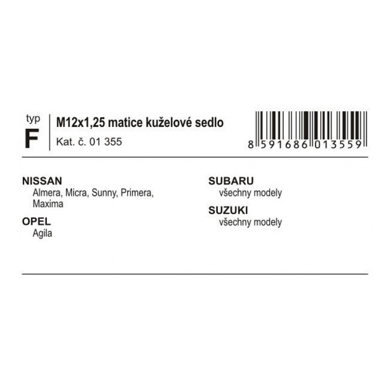 Pojistné matice kol F M12x1, 25 kuželové sedlo