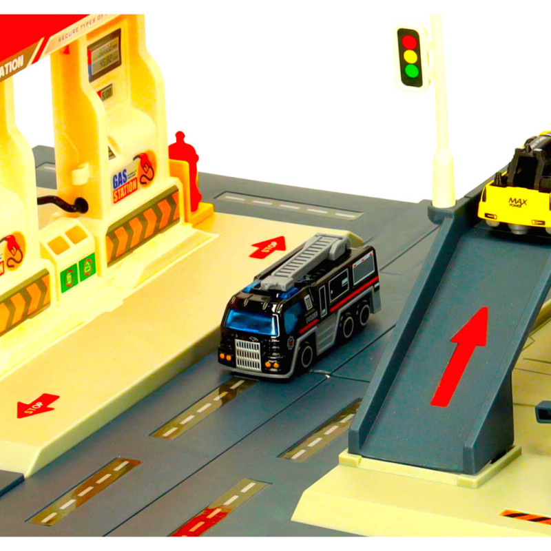 Čerpací stanice a policejní parkoviště v jedné sadě přináší dětem hodiny zábavy a zároveň rozvíjí jejich dovednosti.