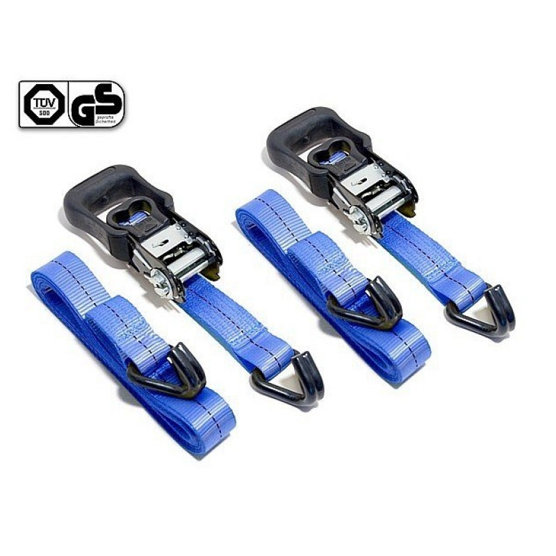 Upínací popruh vysoké kvality, homologace TÜV/GS. Kovové ráčny, úchyty potažené tvrzeným plastem pro snazší manipulaci. Délka: 4,9 m, šířka: 32 mm, tažná síla: 400 N