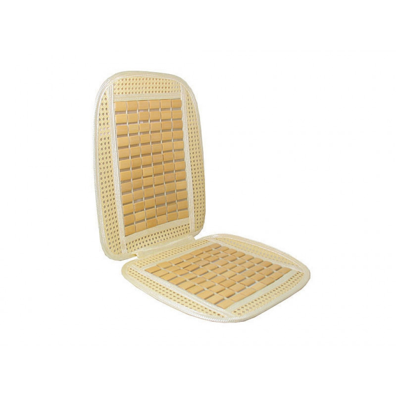 Potah na sedadlo automobilu v bambusovém provedení , univerzální upevnění na většinu běžně používaných sedadel. Potah sedáku z bambusových částí s textilním lemem., které příjemně masírují tělo, podporují krevní oběh, pomáhají snižovat únavu i bolestivost zad a umožňují proudění vzduchu mezi sedadlem a zády řidiče. Pokud potah na sedadlo pouze položíte (bez připevnění na opěradlovou část sedadla), lze potah použít i na sedadla se zabudovaným bočním airbagem přímo v opěradle.