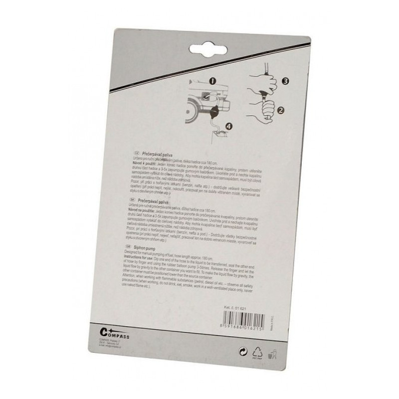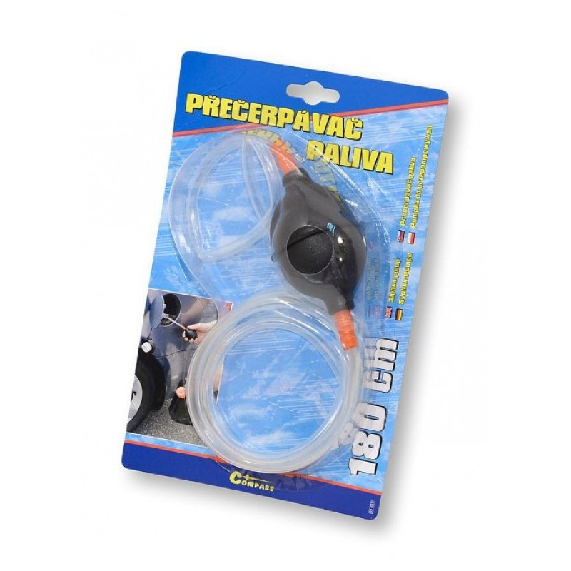 Určeno pro ruční přečerpávání paliva, délka hadice cca 180 cm . Jednoduché použití - jeden konec hadice ponořte do přečerpávání kapaliny, prstem utěsněte druhou část hadice a 3-5x zapumpujte gumovým balónkem. Uvolněte prst a nechte kapalinu samospádem vytékat do cílové nádoby. Aby mohla kapalina téct samospádem, musí být cílová nádoba umístěna níže, než nádoba zdrojová.