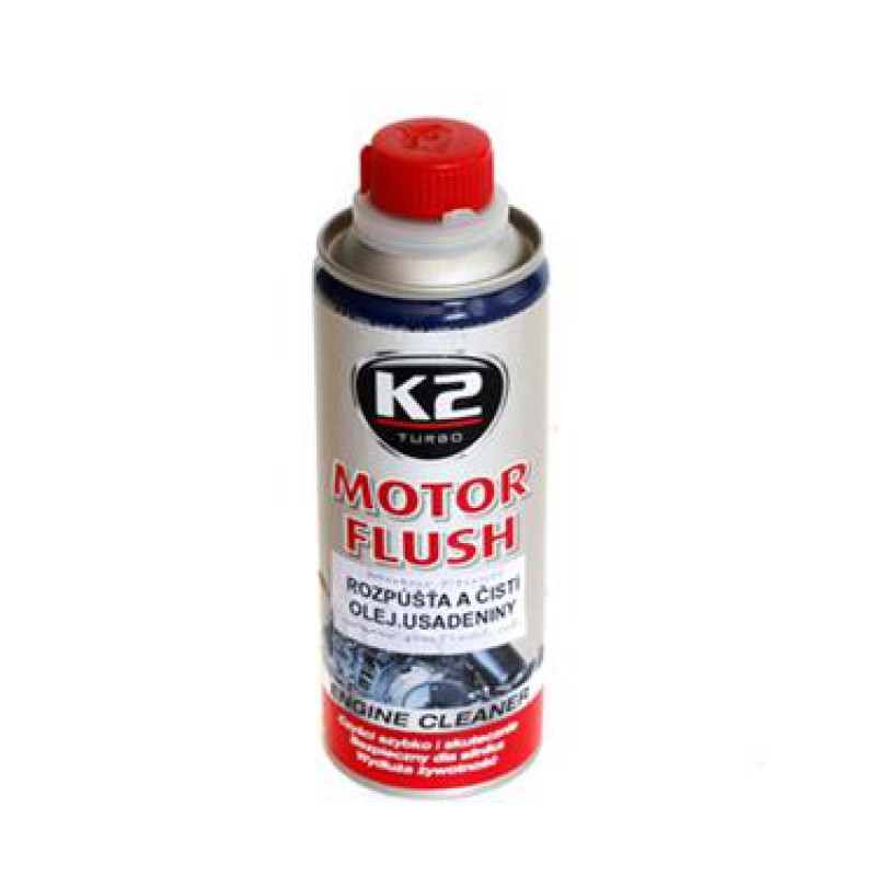 K2 MOTOR FLUSH - pro vyčištění motoru před výměnou oleje. Čistí rychle a efektivně, je bezpečný k motoru, zvyšuje životnost. Během 5 minut rozpouští těžké nečistoty a usazeniny i v těch nejnepřístupnějších olejových částech motoru. Pomáhá zdokonalit olejový oběh tak, že obnoví plnou šířku průtokových kanálků oleje. Kromě toho čistí lepkavé válce, svíčky, a pístové kroužky. Motor Flush byl vyroben s použitím nejmodernějších technologií. Obsahuje vysoce účinný čistič.