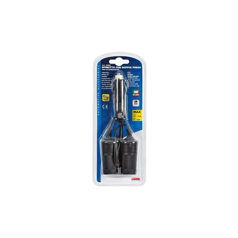 Prodlužovací kabel a rozdvojka cigaretového zapalovače Rozměry: VSTUP ---> 12/24 V - standard VÝSTUP ----> 2 x 12/24 V - standard - 10 A max