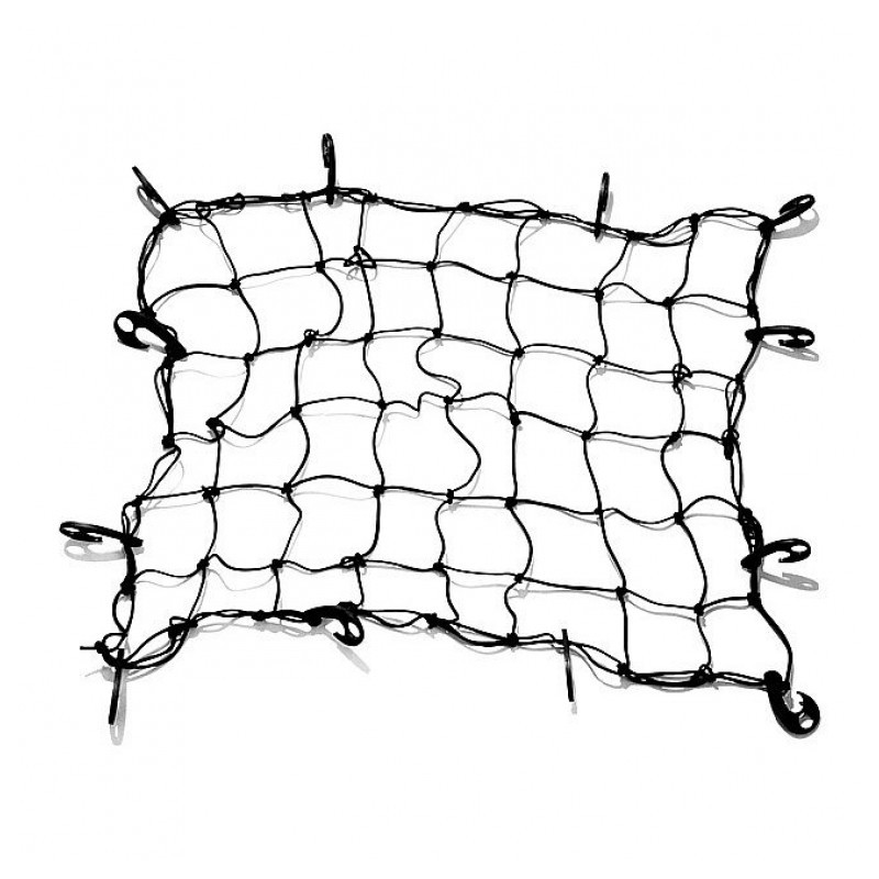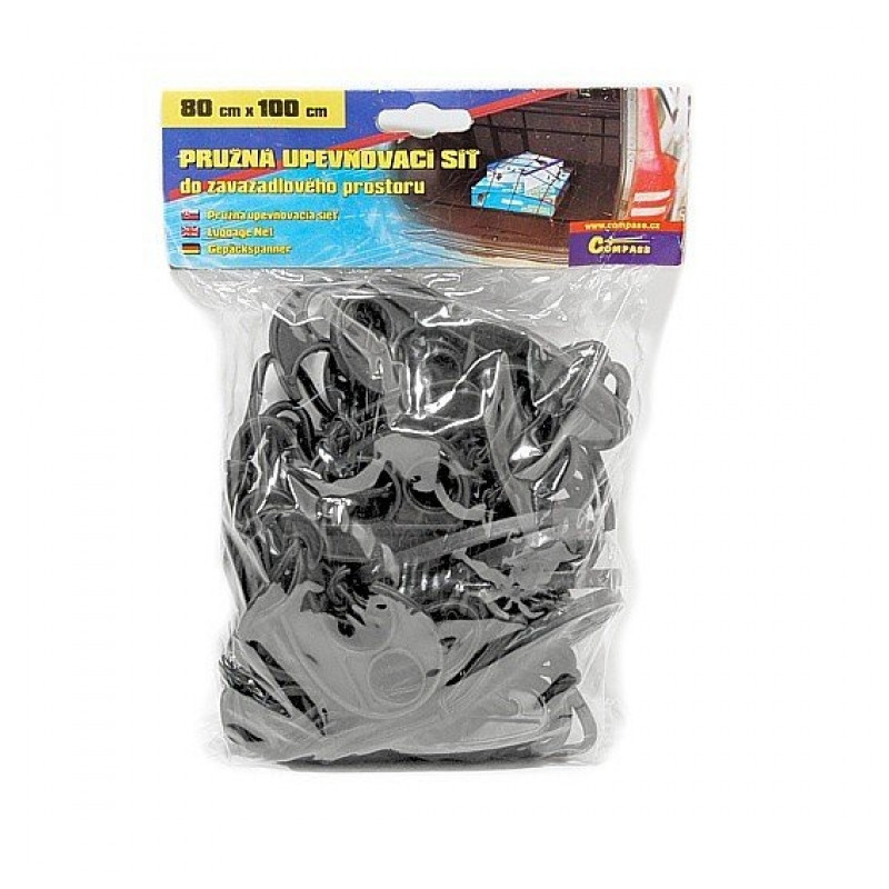 Pružná upevňovací síť s háčky, velikost 100 x 100 cm. Ideální pro připevnění předmětů v zavazadlovém prostoru osobního automobilu.