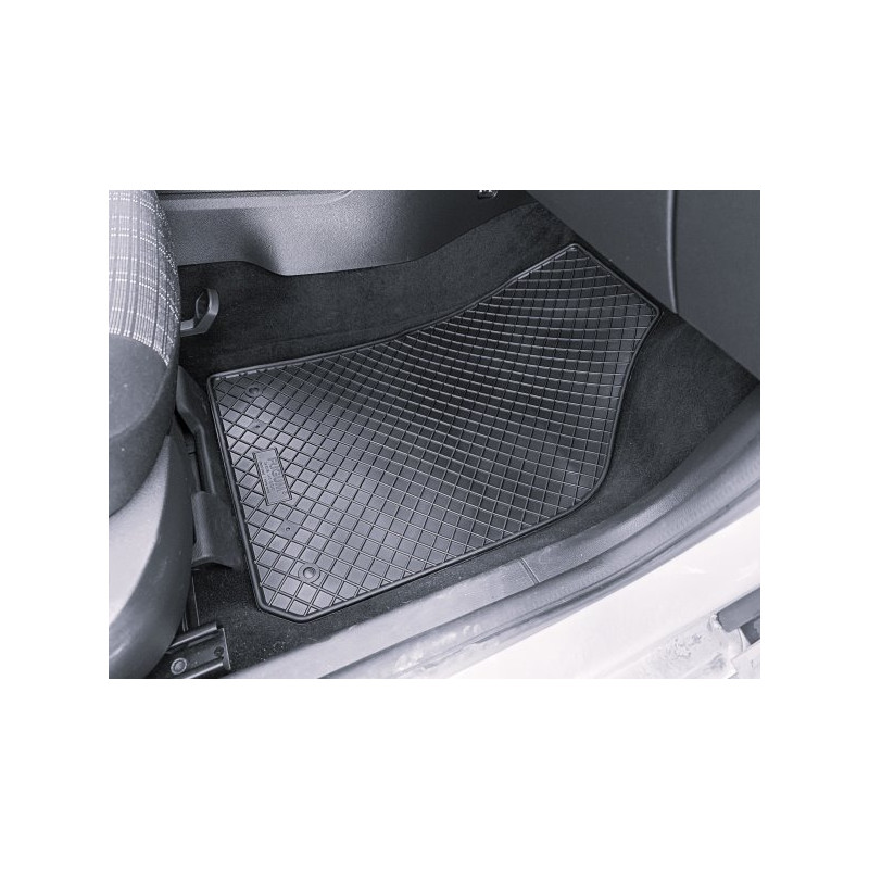 Pryžové rohože na míru pro design ŠKODA Fabia III (2014->). Rohože jsou vyrobeny přesně na míru interiéru daného vozidla. Levnější náhrada originálních rohoží.
