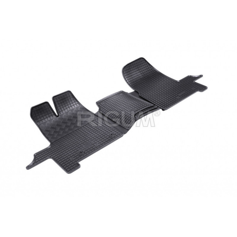Pryžové rohože na míru pro FORD Tourneo/Transit Custom (1+2) 3místné- (2012->). Rohože jsou vyrobeny přesně na míru interiéru daného vozidla. Levnější náhrada originálních rohoží.
