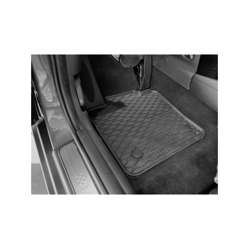 Pryžové rohože na míru pro MINI COOPER 3dv/5dv (F55/56) (od 2020). Rohože jsou vyrobeny přesně na míru interiéru daného vozidla. Levnější náhrada originálních rohoží.
