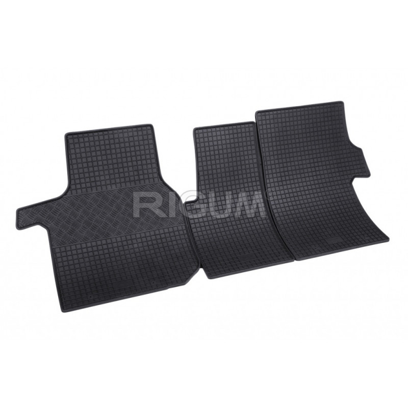 Pryžové rohože na míru pro VW Crafter 3místné (2017->). Rohože jsou vyrobeny přesně na míru interiéru daného vozidla. Levnější náhrada originálních rohoží.