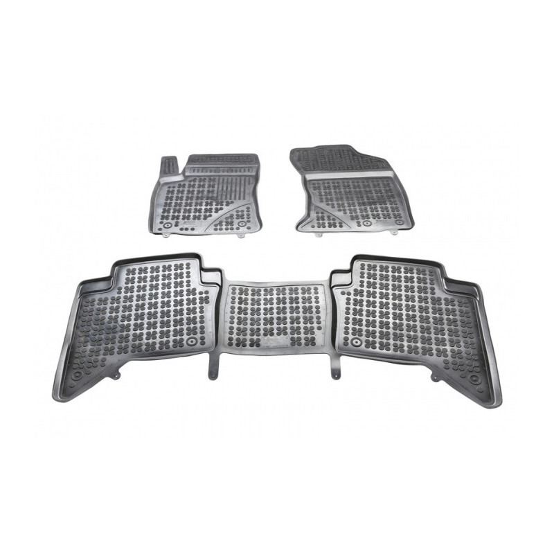 Pryžové rohože se zvýšeným okrajem pro TOYOTA HILUX (AN120, AN130) 4-dveřový (od 2015) (2015->) na míru. Rohože se zvýšeným okrajem vyrobeny přesně na míru interiéru daného vozidla. Vysoká odolnost, kvalita zpracování a celoroční využití.