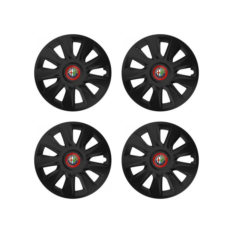 Poklice 16 STRATOS RR black pro Alfa Romeo na ocelové disky. Pro kola o velikosti R16 s pryskyřičnými samolepkami Alfa Romeo.Příjemce :