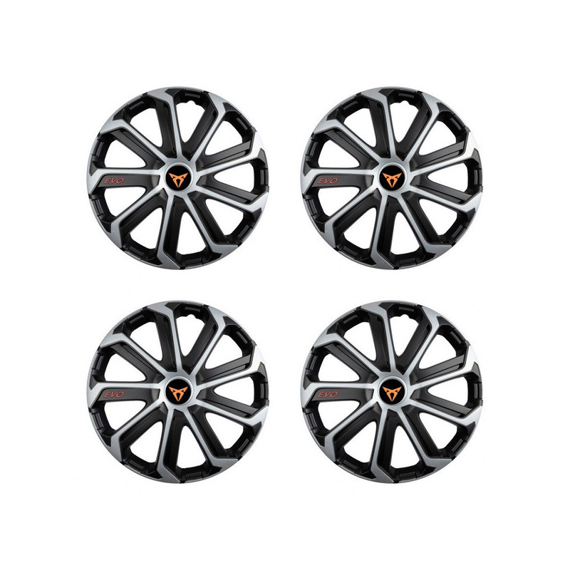 Poklice 15 Evo black&silver pro Cupra na ocelové disky. Pro kola o velikosti R15 s pryskyřičnými samolepkami Cupra.Příjemce :