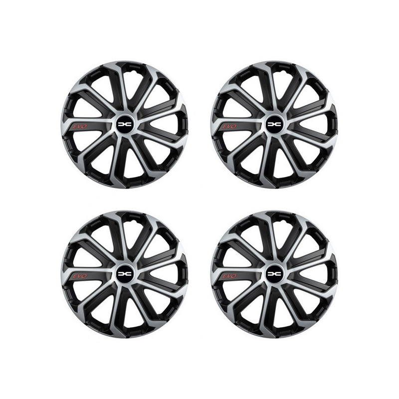 Poklice 14 Evo black&silver pro Dacia (nové logo) na ocelové disky. Pro kola o velikosti R14 s pryskyřičnými samolepkami Dacia (nové logo).Příjemce :