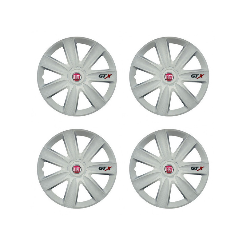 Poklice 14 GTX carbon white pro Fiat (červené) na ocelové disky. Pro kola o velikosti R14 s pryskyřičnými samolepkami Fiat (červené).Příjemce :