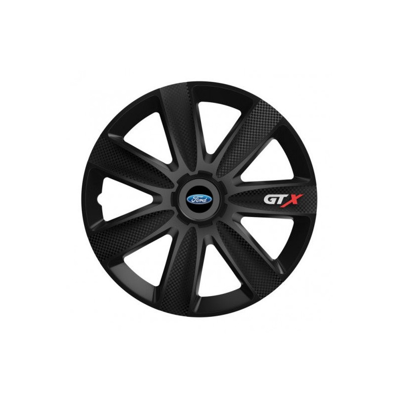 Poklice 15 GTX CARBON black pro Ford na ocelové disky. Pro kola o velikosti R15 s pryskyřičnými samolepkami Ford.Příjemce :
