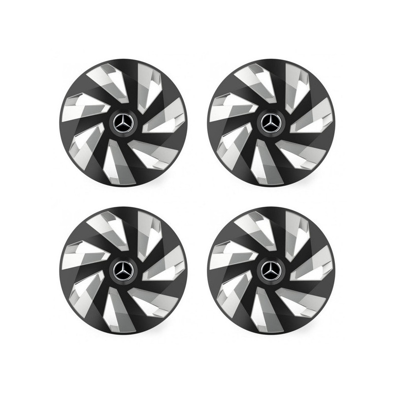 Poklice 14 Vector RC black and silver pro Mercedes na ocelové disky. Pro kola o velikosti R14 s pryskyřičnými samolepkami Mercedes.Příjemce :