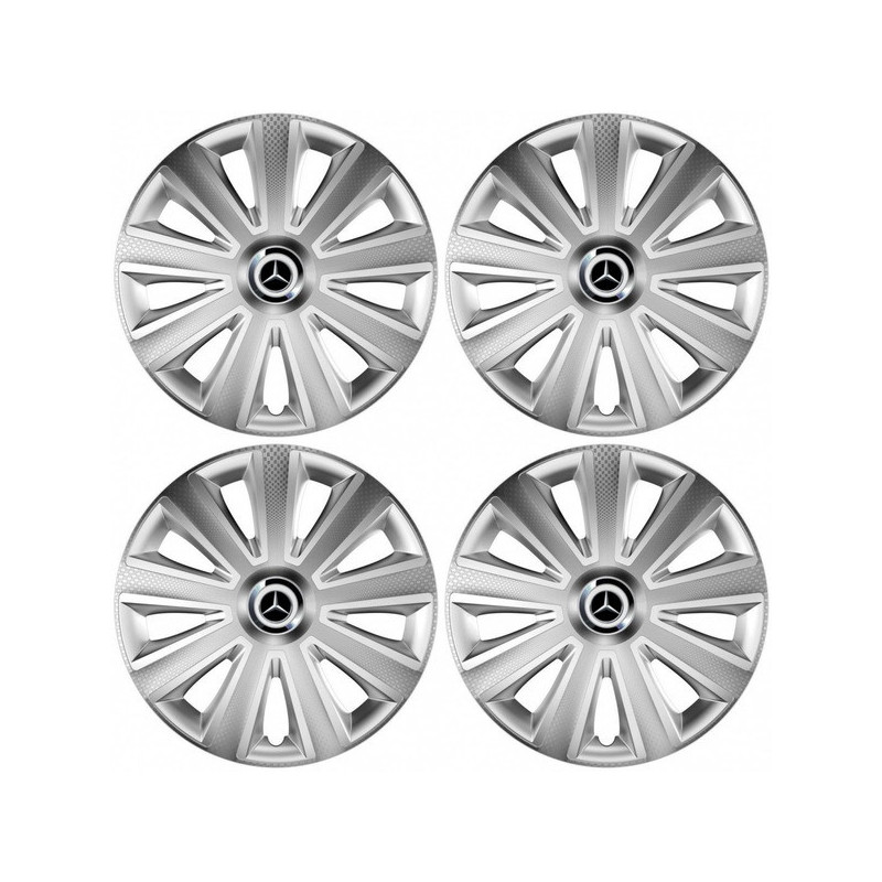 Poklice 15 Aviator carbon silver pro Mercedes na ocelové disky. Pro kola o velikosti R15 s pryskyřičnými samolepkami Mercedes.Příjemce :