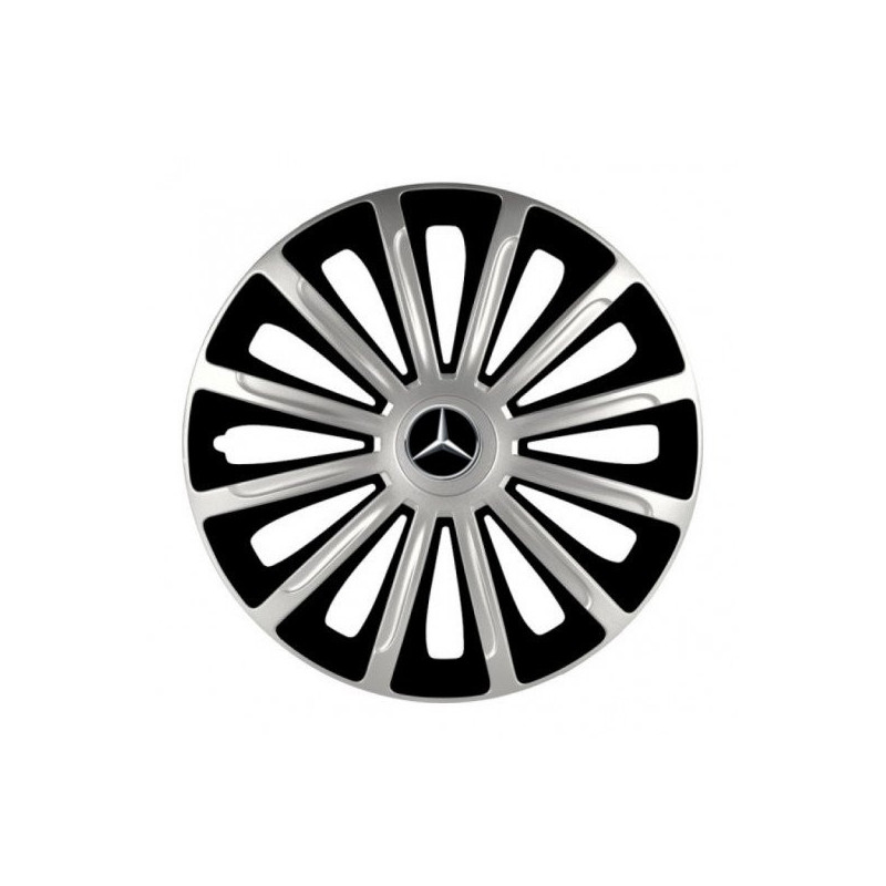 Poklice 15 TREND silver and black pro Mercedes na ocelové disky. Pro kola o velikosti R15 s pryskyřičnými samolepkami Mercedes.Příjemce :