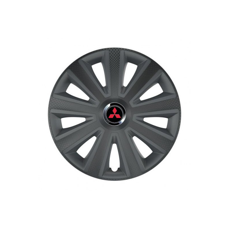 Poklice 15 Aviator carbon grafite pro Mitsubishi (červené) na ocelové disky. Pro kola o velikosti R15 s pryskyřičnými samolepkami Mitsubishi (červené).Příjemce :
