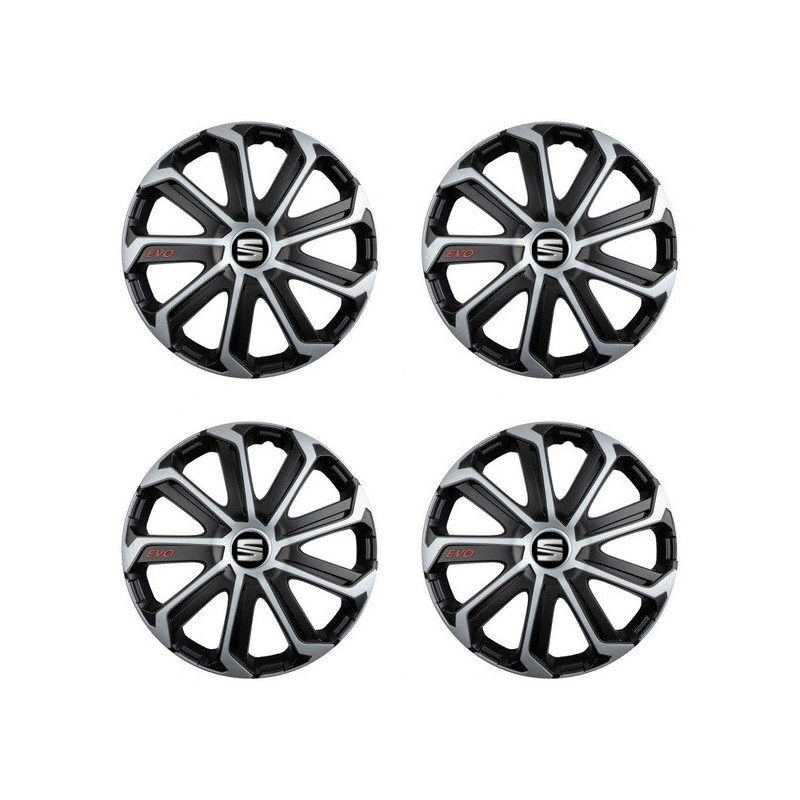 Poklice 14 Evo black&silver pro Seat na ocelové disky. Pro kola o velikosti R14 s pryskyřičnými samolepkami Seat.Příjemce :