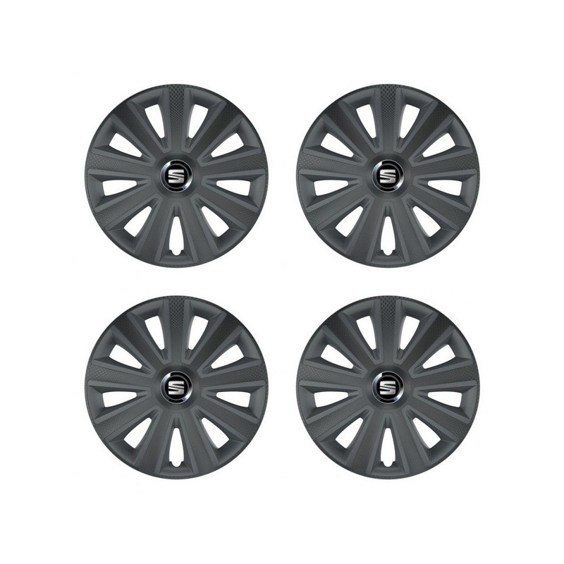 Poklice 15 Aviator carbon grafite pro Seat na ocelové disky. Pro kola o velikosti R15 s pryskyřičnými samolepkami Seat.Příjemce :