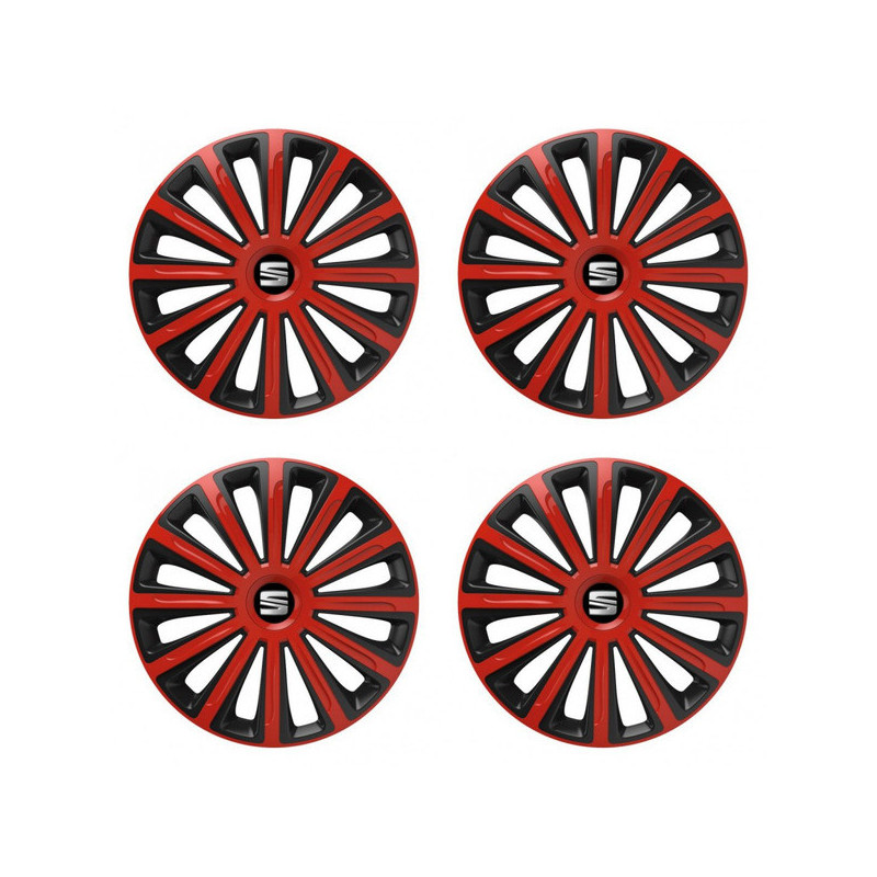 Poklice 15 TREND red and black pro Seat na ocelové disky. Pro kola o velikosti R15 s pryskyřičnými samolepkami Seat.Příjemce :