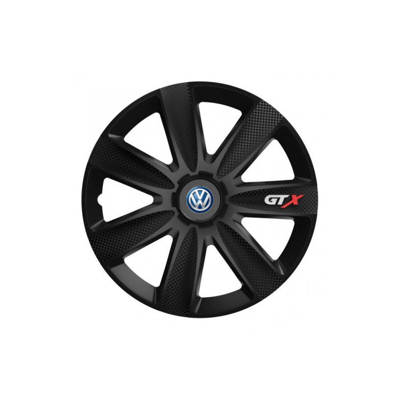 Poklice 14 GTX CARBON black pro VW (modré) na ocelové disky. Pro kola o velikosti R14 s pryskyřičnými samolepkami VW (modré).Příjemce :