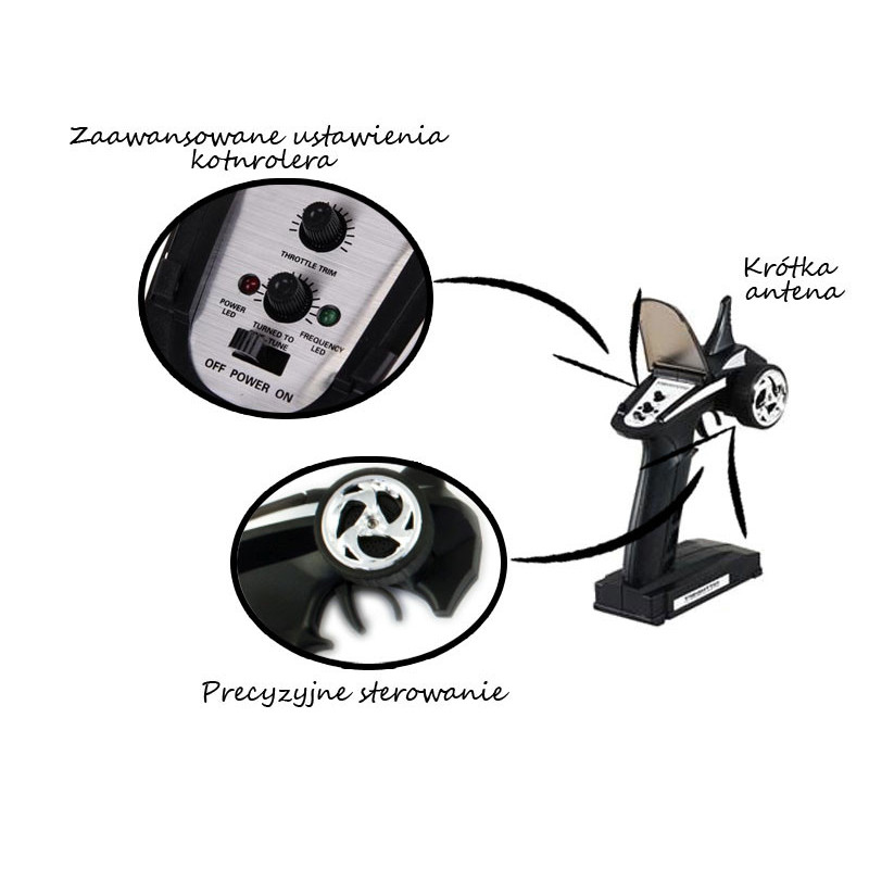 Ovladač ve tvaru pistole se snadno používá. Stisknutím spouště člun začne plout vpřed, zatlačením spouště směrem od sebe se pohybuje dozadu. Kolečko na pravé straně ovladače slouží k otáčení lodi. Ovládání je jednoduché, což je ideální pro děti a začátečníky.