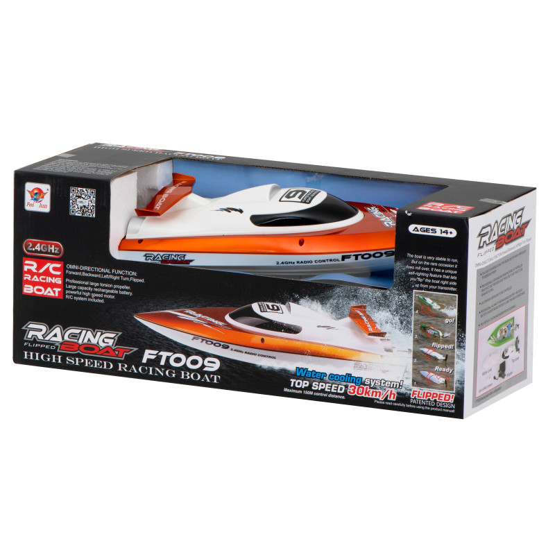 Motorový člun FT009 je skvělý model pro vodní závody a dobrodružství. S rychlostí až 30 km/h a vodotěsnou konstrukcí nabízí nezapomenutelný zážitek na vodě. Ideální pro všechny, kdo chtějí vyzkoušet vodní motoristické sporty nebo si prostě užít zábavu na vodě!