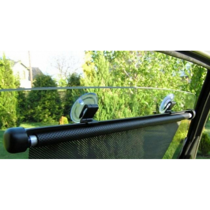 Sluneční roletka určená k montáži na zadní nebo boční zadní sklo osobního automobilu. Uchytávání rolety pomocí přísavek nebo zavěšením.