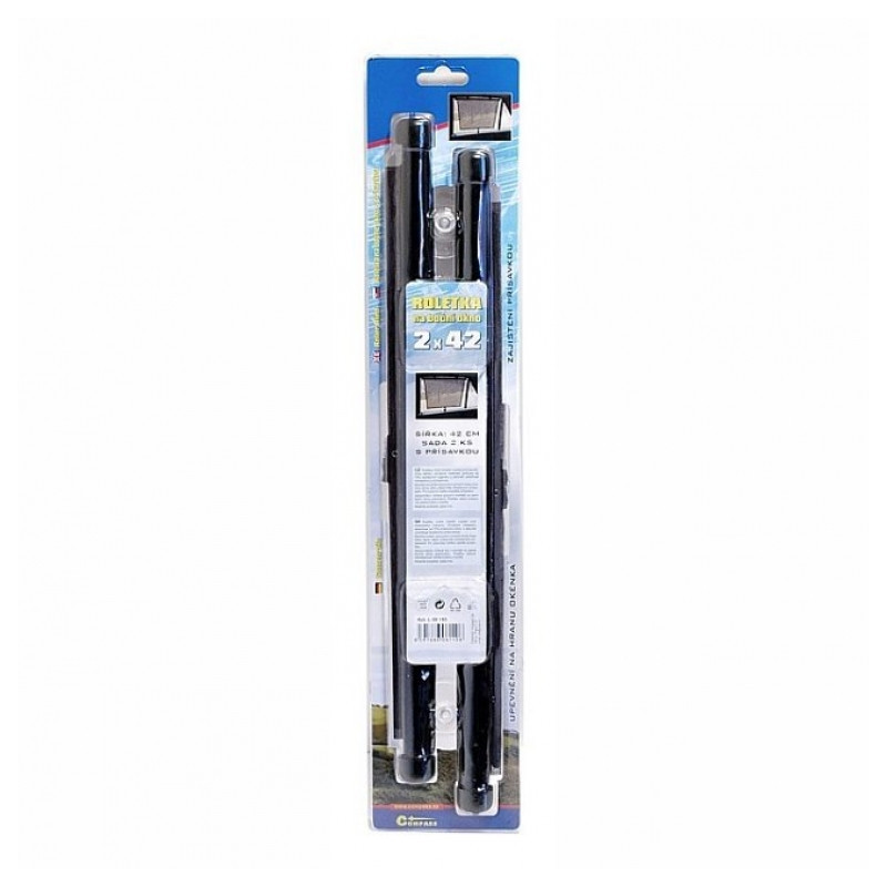 Určeno k montáži na zadní boční okna automobilu, připevnění nasunutím na horní hranu bočního okna, nebo přiloženými přísavkami. Roletku lze ve vysunuté poloze fixovat zahákněte za přísavku a použitím aretace. Způsob perforace materiálu zajišťuje absorpci cca 70% slunečních paprsků Materiál polyester, sada 2 ks, s přísavkami, Velikost vytažené roletky 42 x 55 cm, šířka celé roletky včetně uchycení: 46 cm.
