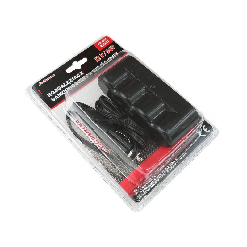 Rozdělovač zapalovače 4x 12/24V Rozměry: VSTUP ---> 12/24 V - standard VÝSTUP ----> 2 x 12/24 V - standard - 10 A total 2 x 5 V - USB - 1 A total