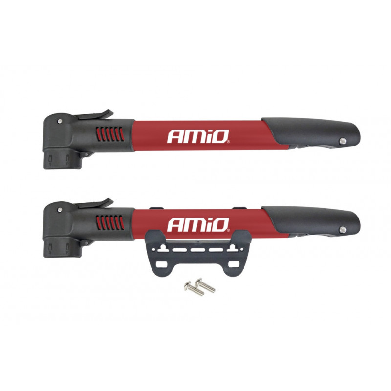 Pumpa na kolo uzpůsobené pro dva typy ventilů (jednoduché a standardní auto). Zahrnuje konzolu pro montáž na rám kola pod láhev s vodou.