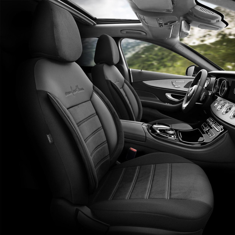 Individuální přizpůsobení: Potahy nemají předpřipravené výřezy pro pásy a zadní opěrky hlavy, což umožňuje jejich přesné přizpůsobení konkrétnímu modelu vozidla po instalaci.