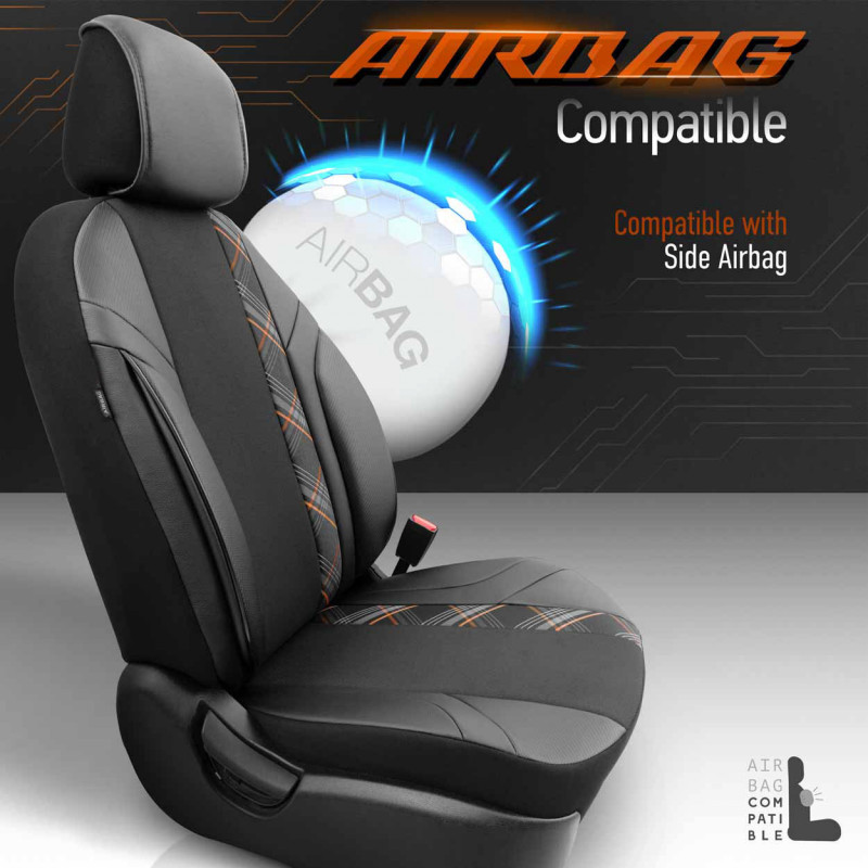 Standardní potahy mají certifikovaný šev AIRBAGový, díky čemuž jsou vhodné jak pro auta s bočními airbagy v sedadlech, tak i pro standardní sedadla. Díky použití speciálního švu bylo možné použít zcela, aniž by narušovali práci AIRBAGŮ.