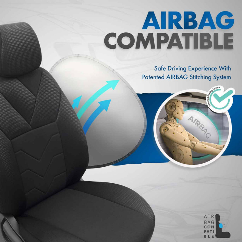 Štandardné poťahy majú certifikovaný šev AIRBAGový, vďaka čomu sú vhodné pre autá s bočnými airbagmi v sedadlách, ako aj pre štandardné sedadlá. Vďaka použitiu špeciálneho švu pokrývajú sedadlá úplne bez toho, aby narúšali prácu AIRBAGOV.
