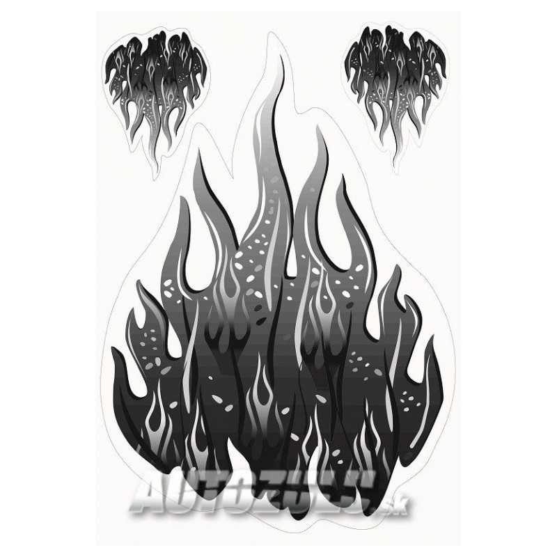 Krásná barevná tištěná samolepka plameny set šedé . Tištěná na bílou fólii.
